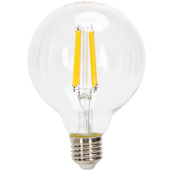 Aporta un toque decorativo y elegante a tus espacios con la bombilla de filamento LED G95. Su diseño transparente y estilo retro combina la estética clásica de las lámparas incandescentes con la eficiencia energética de la tecnología LED.