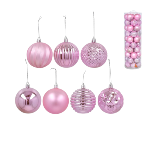 Decora tu hogar con estilo y color esta Navidad con este práctico bote que contiene 50 bolas colgantes rosas de 7 cm. Cada bola está diseñada para brindar un brillo delicado y sofisticado, convirtiéndolas en un complemento ideal para tu árbol de Navidad, coronas, guirnaldas o centros de mesa.