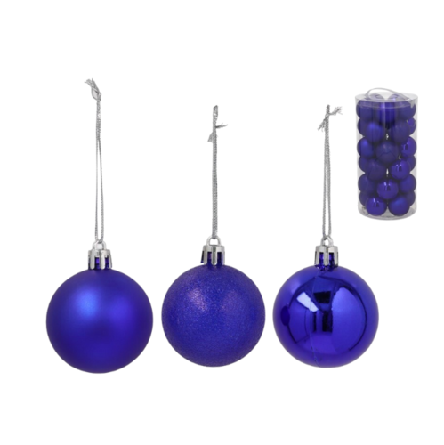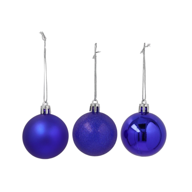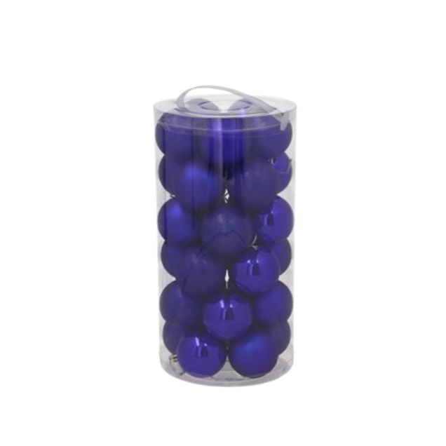 Aporta elegancia y profundidad a tu decoración navideña con esta caja de 30 bolas MUNYPU de 6 cm en tonos azul oscuro surtidos, ideales para lograr un ambiente sofisticado y moderno.