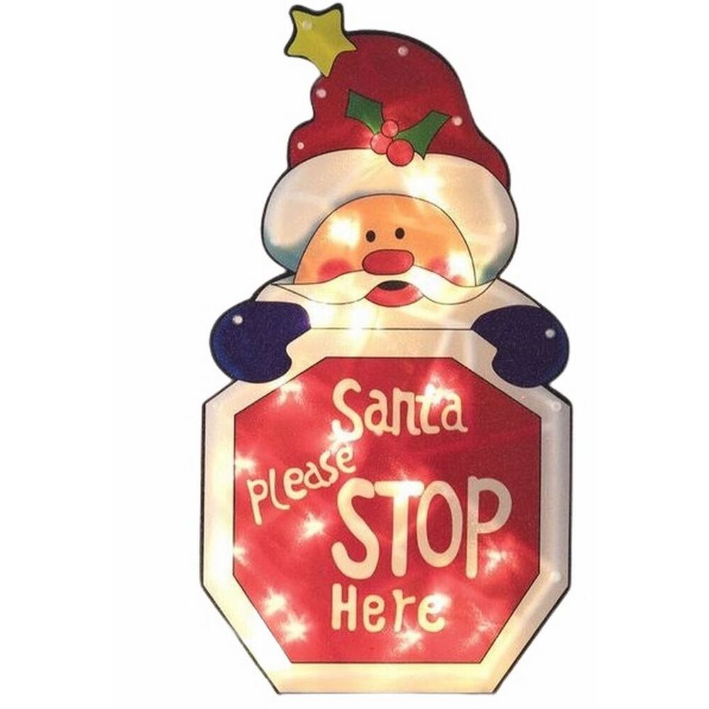 Cartel Navidad Stop Santa Claus 20 LED a pilas 45 x 24.5 cm