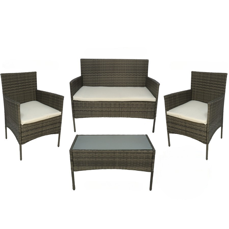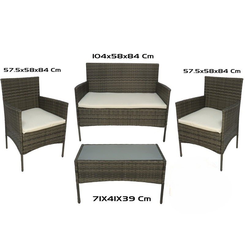 Fabricado con estructura resistente y recubierto de ratán sintético de alta calidad, este conjunto es ideal para exteriores gracias a su resistencia a la intemperie y al desgaste diario. Los cojines incluidos en los asientos aportan un extra de confort y están diseñados para adaptarse perfectamente al cuerpo, brindando una experiencia de descanso superior.