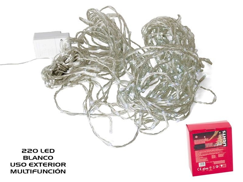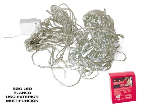 Cortina Navidad 220 LED exterior 8 funciones 2x1m blanco frío