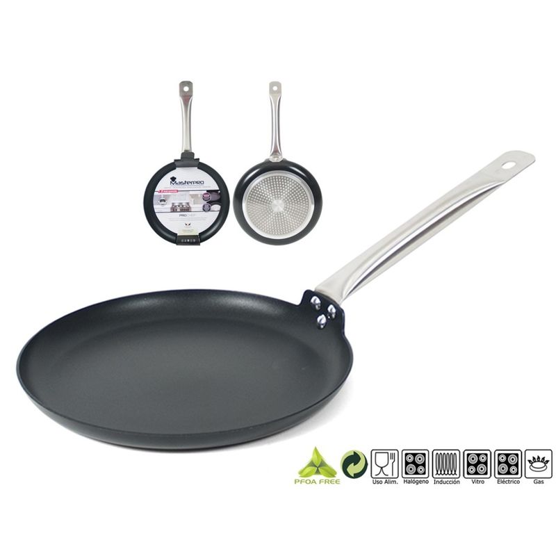 • Sartén de la serie ProChef, de la colección Masterpro de Bergner, fabricada en aluminio prensado en negro, con revestimiento antiadherente en negro igualmente, con cuerpo resistente a la corrosión