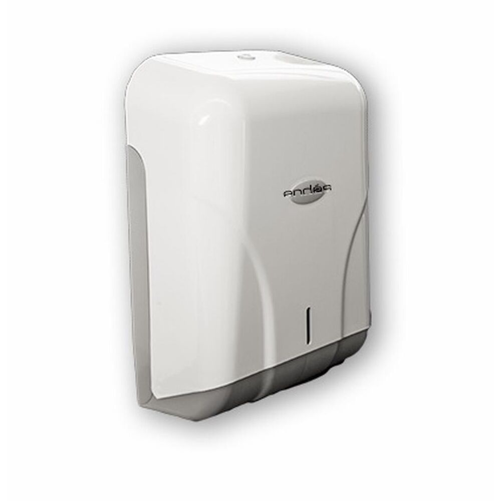 • Dispensador para toallas zigzag modelo Teyde fabricado en policarbonato, con tapa blanca y base gris.