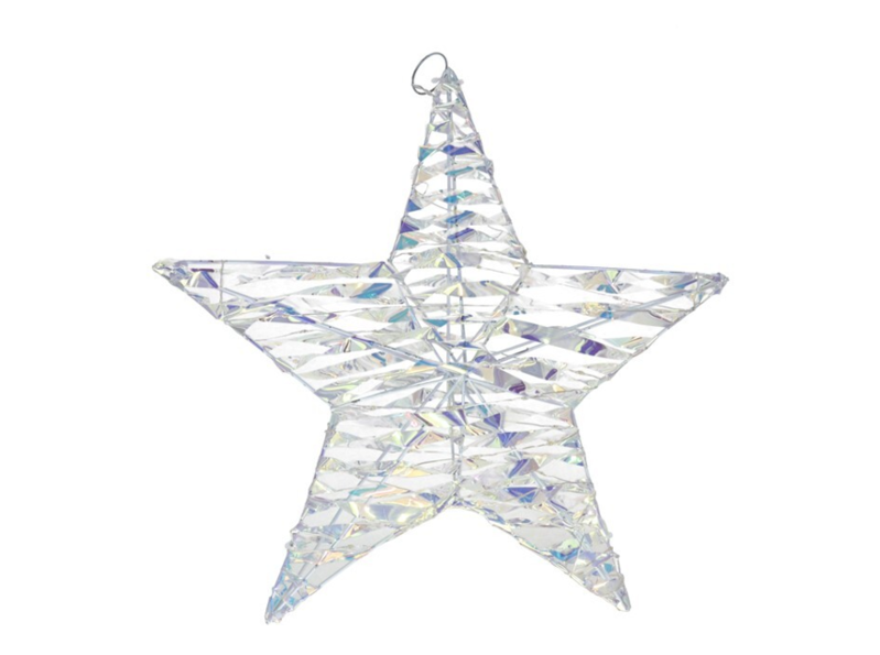 Porta brillo y elegancia a tu decoración navideña con esta estrella de metal en color plata de 50 cm, iluminada con 250 luces LED que llenarán tu hogar de luz y espíritu festivo.
