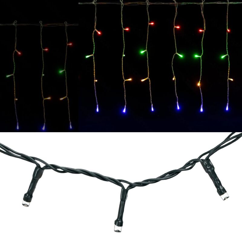 La guirnalda plana de carámbano con luces LED empotradas RGBY es perfecta para decorar fachadas, tejados, ventanas, balcones y espacios interiores durante celebraciones, eventos o temporada navideña. Con 20 metros de longitud y 100 tiras colgantes de 40 cm, ofrece un efecto visual atractivo y dinámico gracias a sus 400 LED de bajo voltaje. El diseño plano y empotrado garantiza una iluminación uniforme, mientras que su clasificación IP44 asegura protección contra salpicaduras y lluvia ligera, haciéndola adecuada para exteriores. Su sistema de bajo consumo energético proporciona una decoración luminosa eficiente y duradera. Ideal para hogares, comercios y eventos que buscan un toque distintivo y colorido.