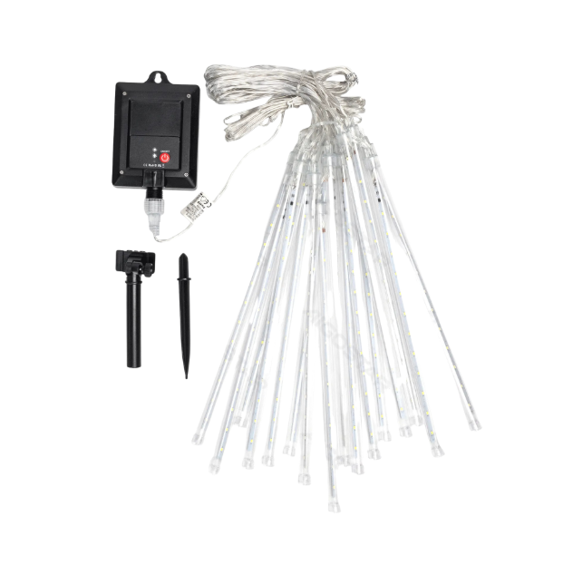 La guirnalda de luces solares de lluvia de meteoritos es una opción decorativa llamativa y sostenible, ideal para iluminar espacios exteriores con un efecto dinámico y cautivador. Cada tubo de 0,3 metros proyecta una secuencia de luz descendente que imita la caída de meteoritos, creando un ambiente mágico y envolvente en jardines, terrazas, balcones o caminos.