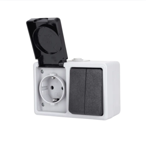 El conjunto de interruptor y enchufe de montaje en superficie es una solución práctica y segura para instalaciones eléctricas en hogares, talleres, oficinas o espacios industriales. Su diseño compacto integra 2 llaves de 1 vía junto con un enchufe tipo alemán (Schuko), ofreciendo mayor comodidad en un solo dispositivo.