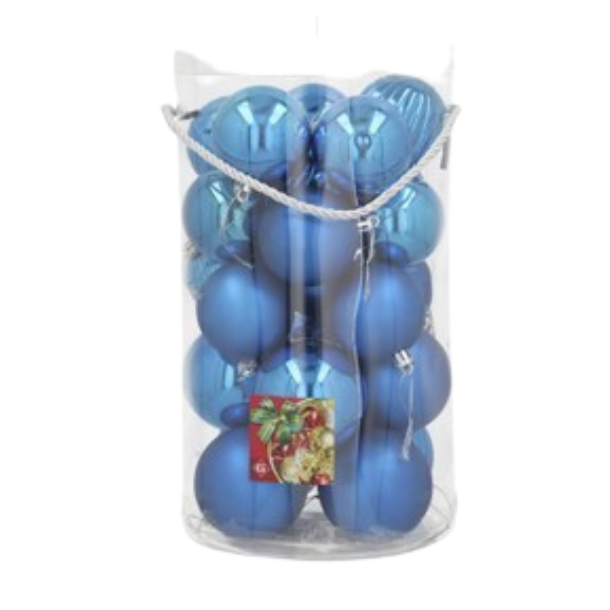 Pack 24 bolas de Navidad color azul 6-7 cm