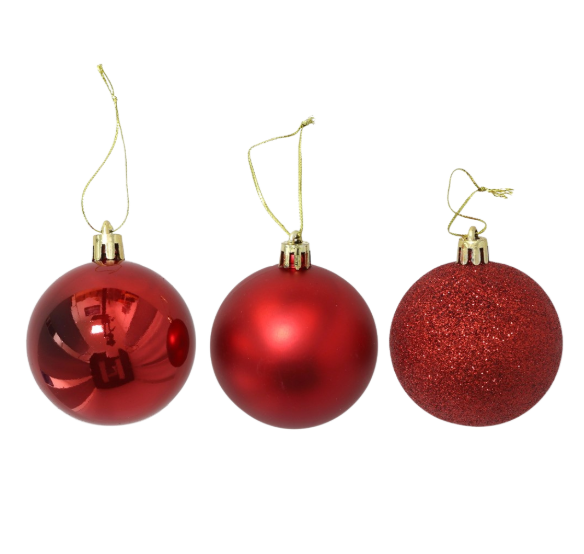 Pack de 20 Bolas de Navidad surtidas 8 cm color rojo