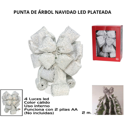 Punta de Árbol de Navidad LED Plata de 2 m