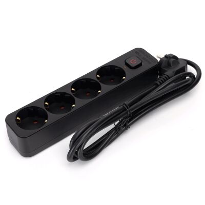 Regleta alemana Serie L de 4 vías con interruptor 1,5 m, 3G, 1,0 mm² negra