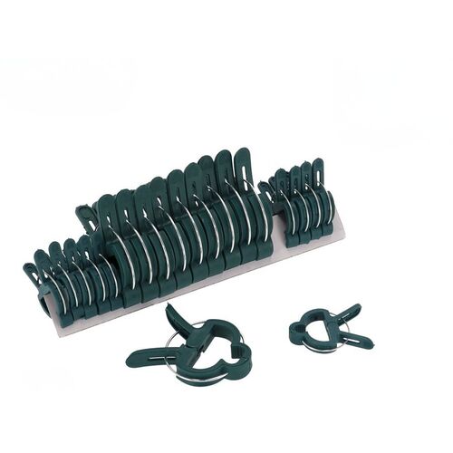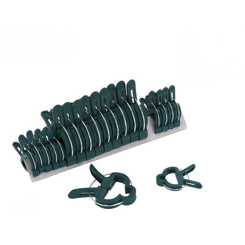 Estas pinzas son ideales para sujetar plantas, tallos o ramas jóvenes durante su crecimiento, ayudando a guiar y proteger la vegetación sin dañarla. También resultan muy útiles para fijar mallas, lonas, plásticos o telas de sombreo en jardines, huertos, balcones o terrazas. Gracias a su diseño funcional, proporcionan una presión equilibrada que mantiene los elementos en su sitio incluso en condiciones de viento o humedad.