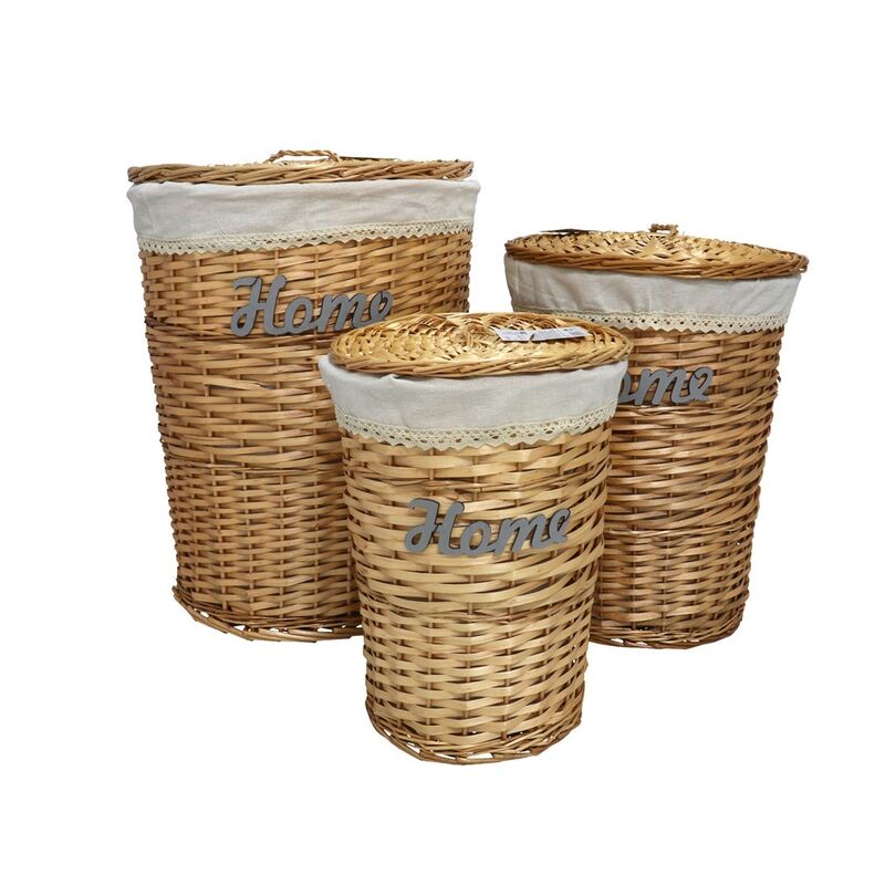 Mantén tu hogar organizado con estilo gracias al Set de 3 Pongotodo Home Honey/Blanco 45 x 58 cm de Gerimport. Diseñados para combinar practicidad y estética, estos cestos son la solución perfecta para almacenar ropa, textiles u otros objetos de uso cotidiano, aportando orden y elegancia a cualquier espacio.