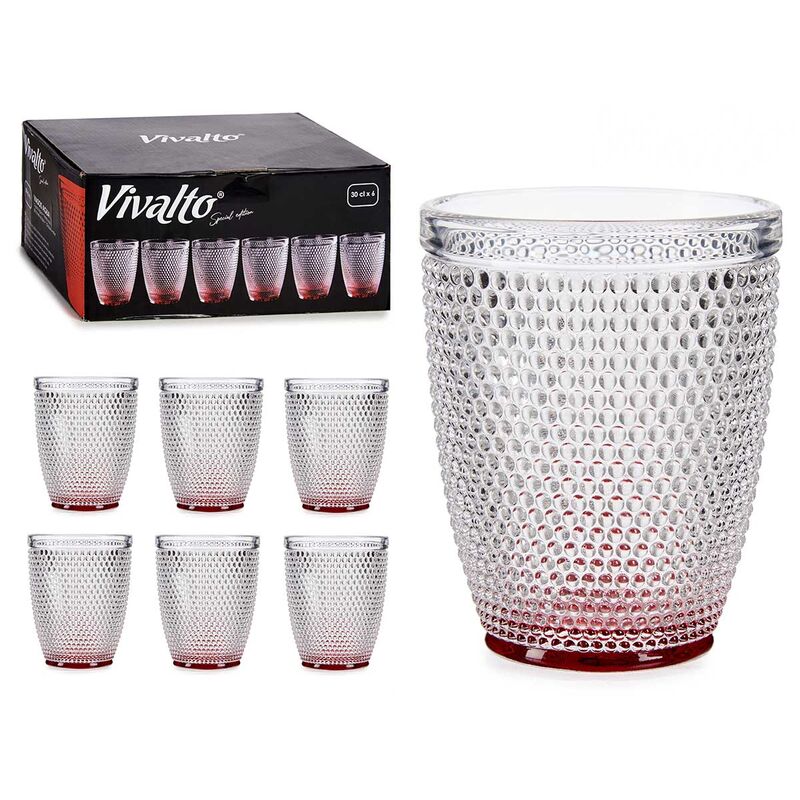 Set 6 Vasos Cristal Puntos Agua 300 ml Rojo 8 x 8 x 10 cm