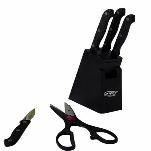 • Consta de cuchillos de calidad premium que ofrecen un corte preciso y cómodo, asegurando que cada preparación sea un éxito. Además, las tijeras incluidas son perfectas para tareas de corte y manipulación de alimentos.