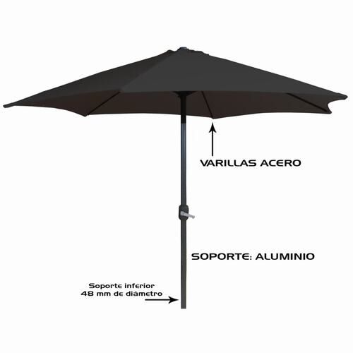Sombrilla antracita 3 metros tubo aluminio 48 mm