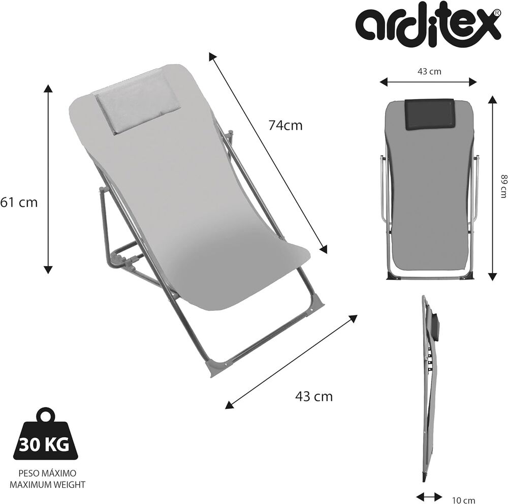 • Dispone de cierre de seguridad para evitar el plegado durante su uso. Incorpora cojín para apoyar la cabeza.